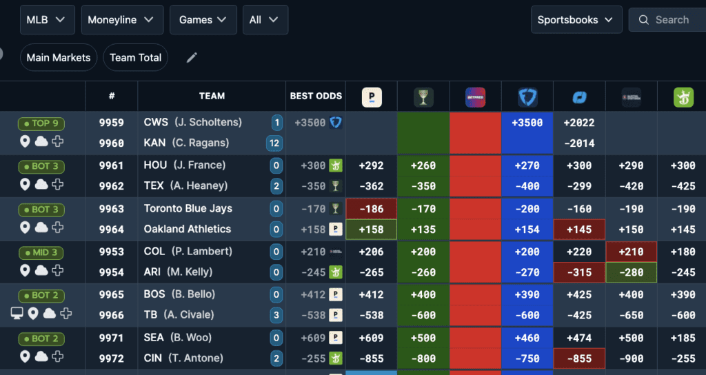 You can also scot potential profitable betting opportunities all at once. For example, look at the difference in the Diamondbacks Rockies game.