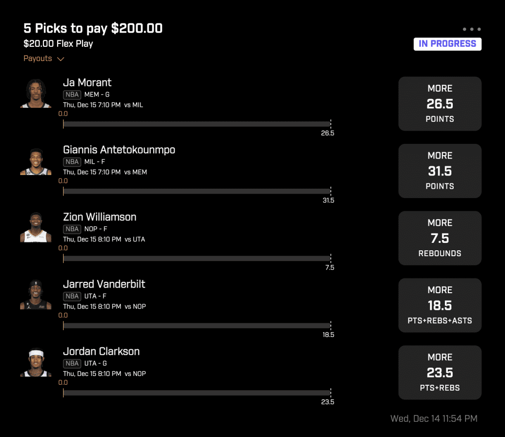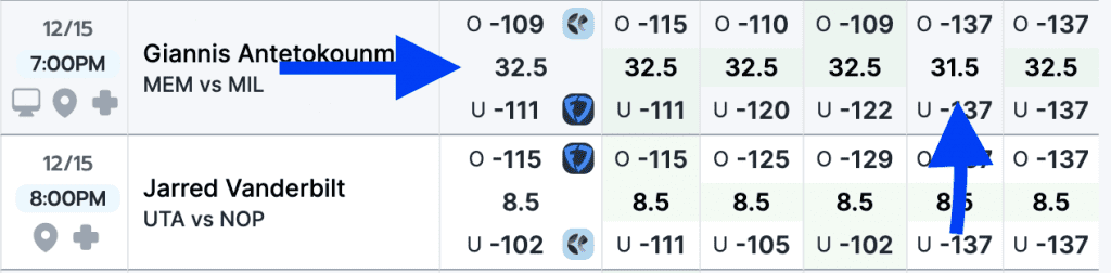 The second leg, Giannis over 31.5 points. Same strategy as Ja in this one. Giannis’ line has gone to 32.5 everywhere except PrizePicks.