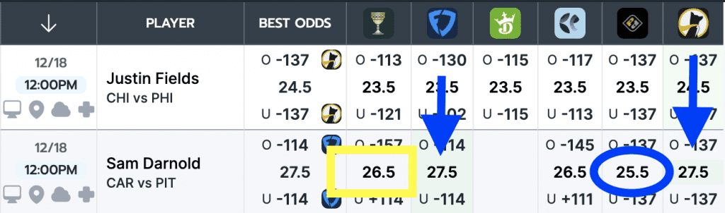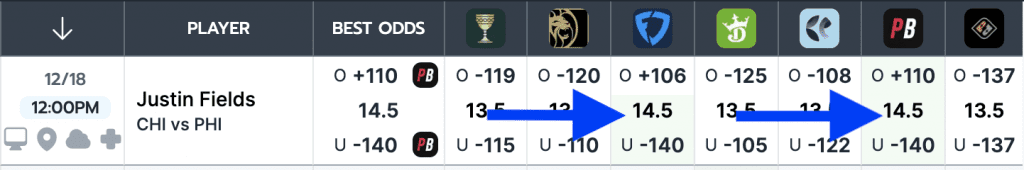 The third leg is Justin Fields over 13.5 pass completions. I pay attention to FanDuel on this market because they will offer passing attempts and passing completions as live bets throughout most of the game. Since they do this, they’re incredibly accurate on the line, and they just moved it up a whole point.