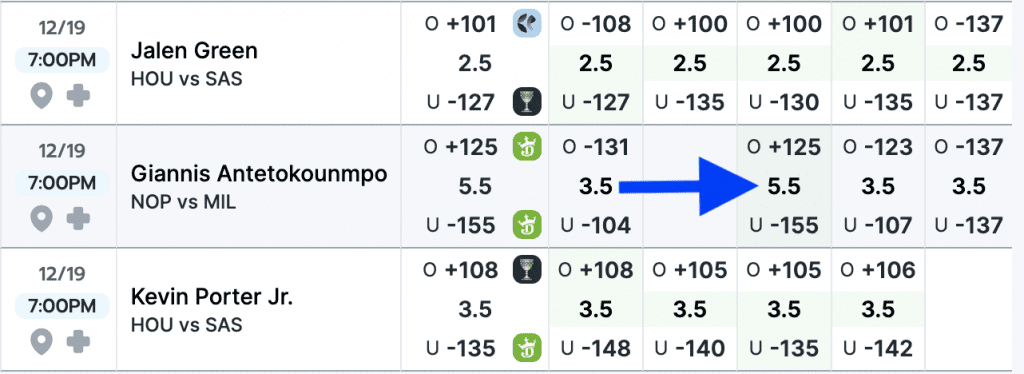 This first leg is Ja Morant over 26.5 points. I’ve been using the OddsJam Screen to keep an eye on the line and odds movements and we already have an advantage here with other books moving his line a point higher while PrizePicks line has stayed the same.