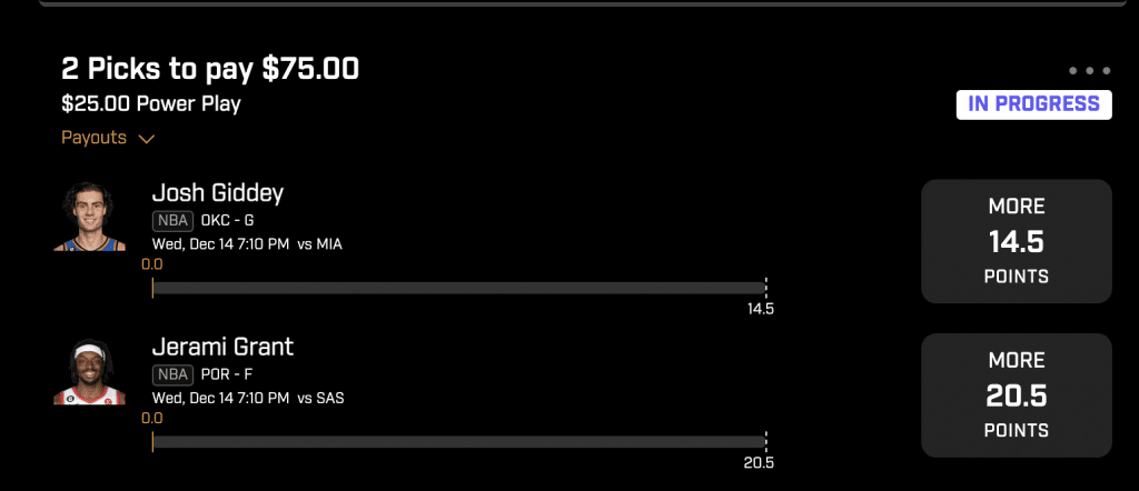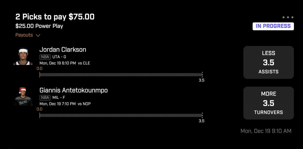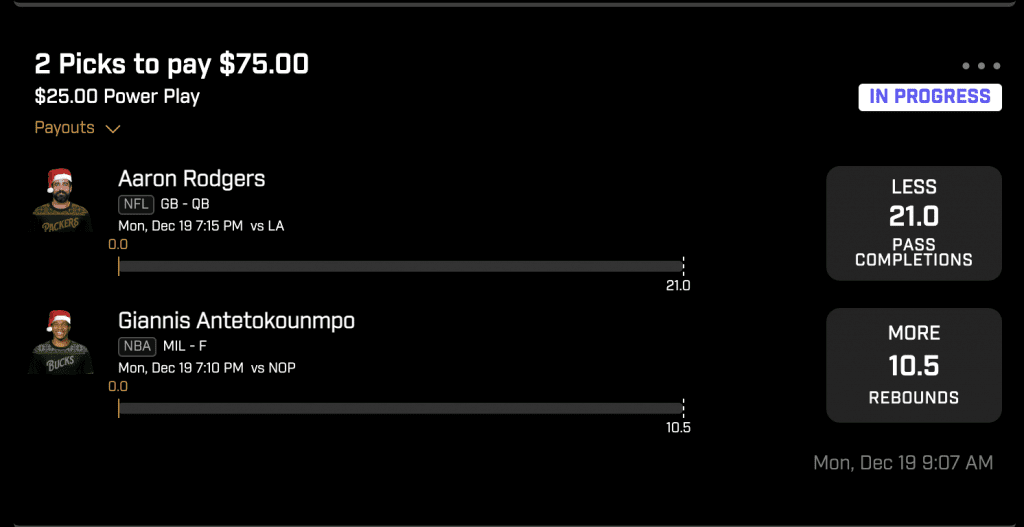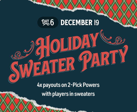 Day 6 of PrizePicks Picksmas! 2-Pick Powers with both players wearing sweaters payout 4X! *Only 2-Pick Powers that only contain players wearing Holiday Sweaters are eligible to be boosted. All entries must be placed on 12/19 and only contain players in action on 12/19. Only the initial 3X will appear in the app and be paid out as normal. The additional 1X boost will be paid out at Noon ET on 12/20 as promo funds. 1H, 2H, and 4Q picks will not be boosted.