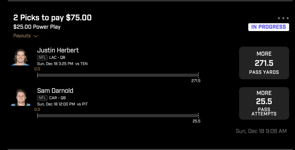Play a certain amount of money, and get a free entry to win x dollars! These types of promos can be very profitable if you play them the right way. Below I’ve put together a 2-pick and a 3-pick play. Since every leg you add to these parlays is just another chance for it to lose, I stick with 2 and 3 legs only.